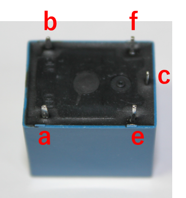 通常はバネによりb接点(ブレーク接点)に繋がっています。端子eとfに電流を流すことでコイルを巻いた鉄心に磁力が発生することでレバーが動作し、a接点側に繋がります。これによりa接点に接続された電子部品が動作します。